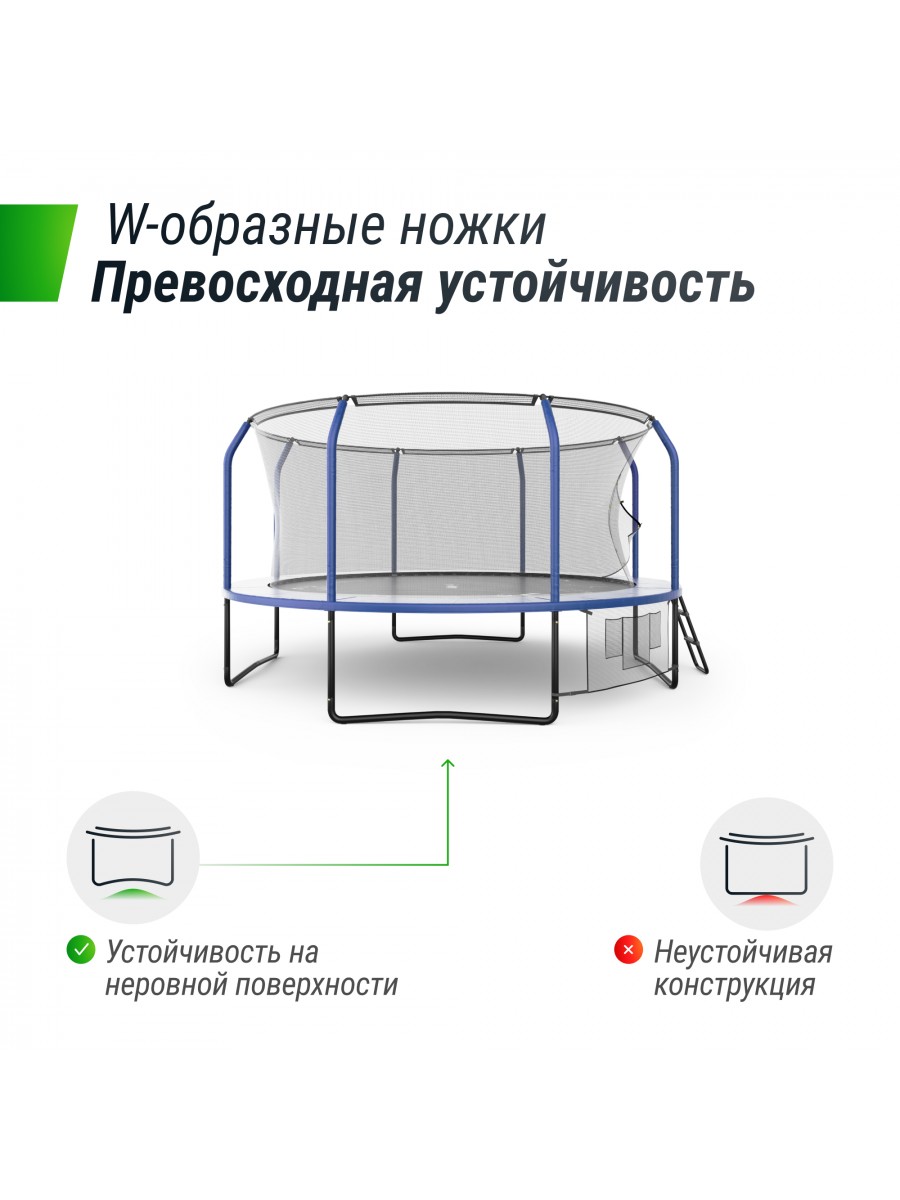 Специальные крепления батута к земле (колышки) не входят в комплектацию (приобретаются отдельно).
