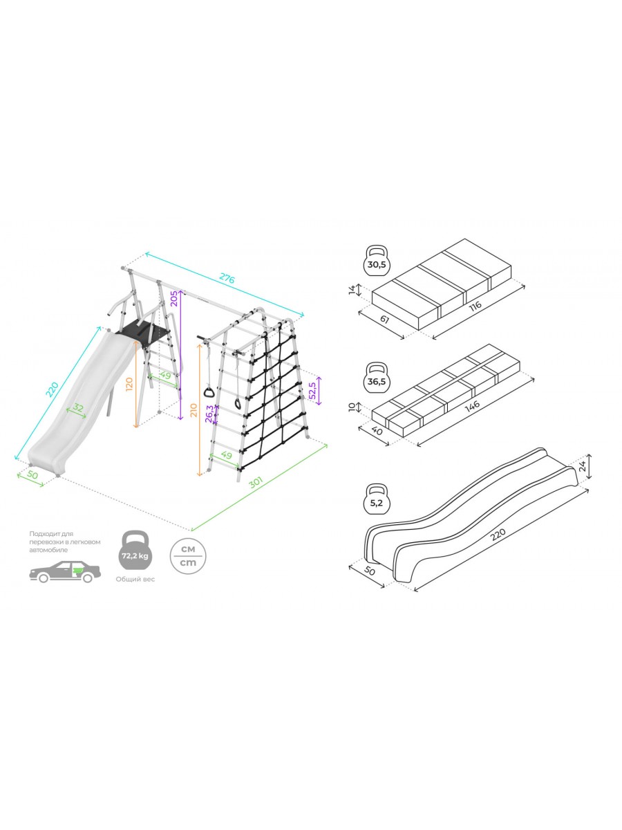| Высота горки120 см | Длина горки220 см | Допустимая нагрузка на горку50 кг |