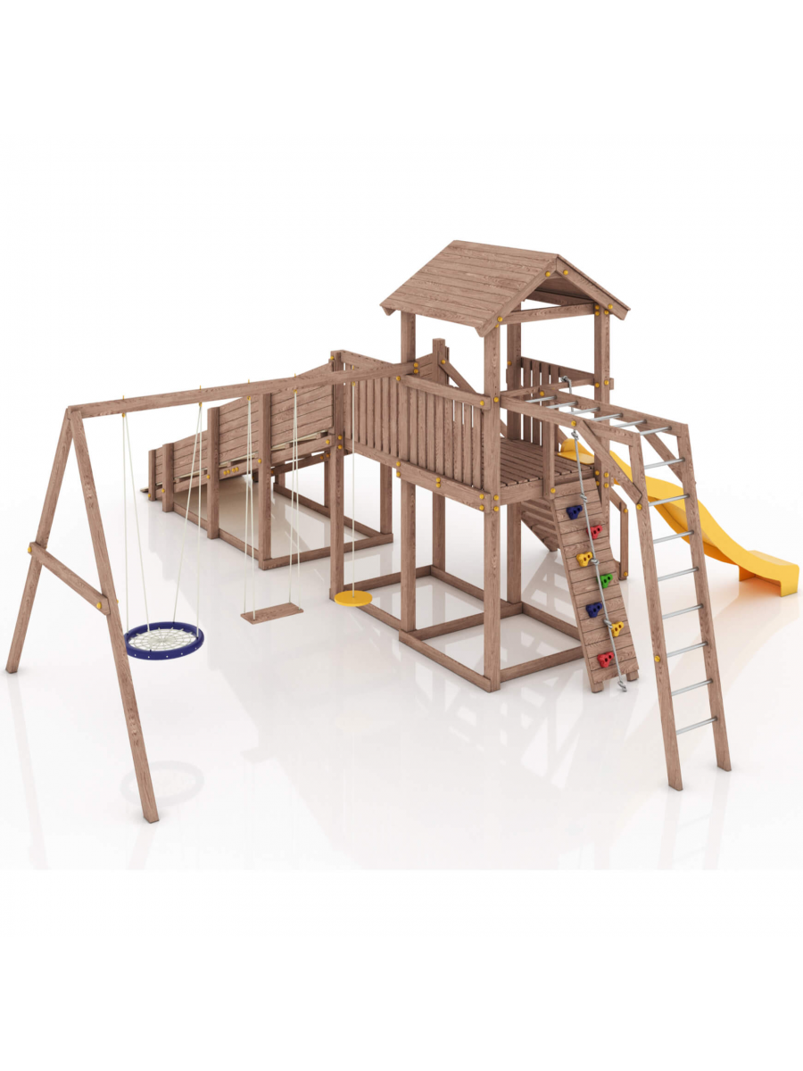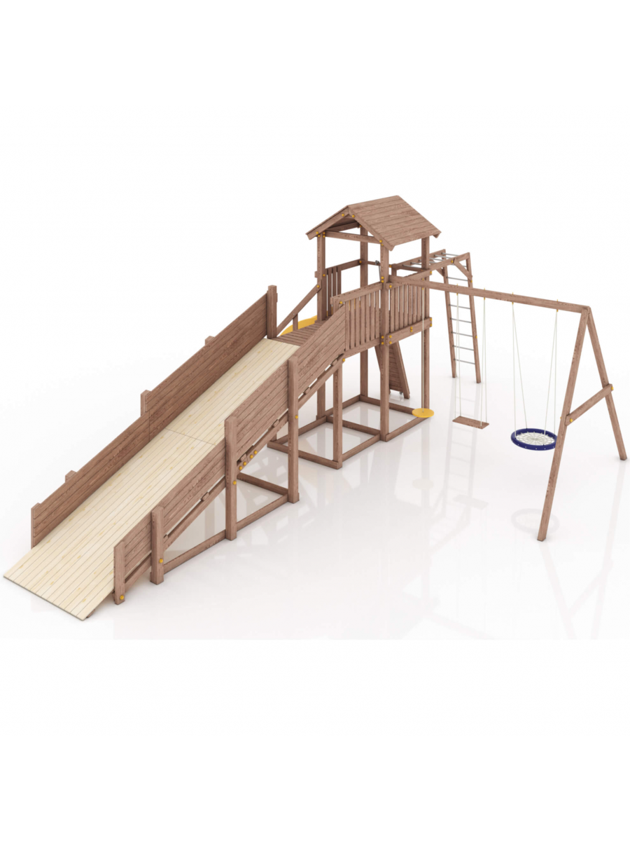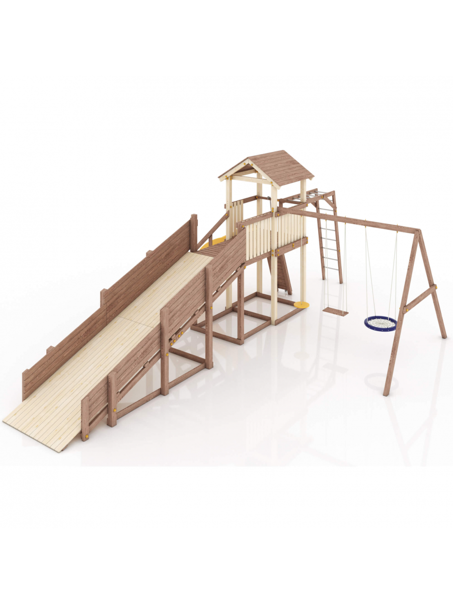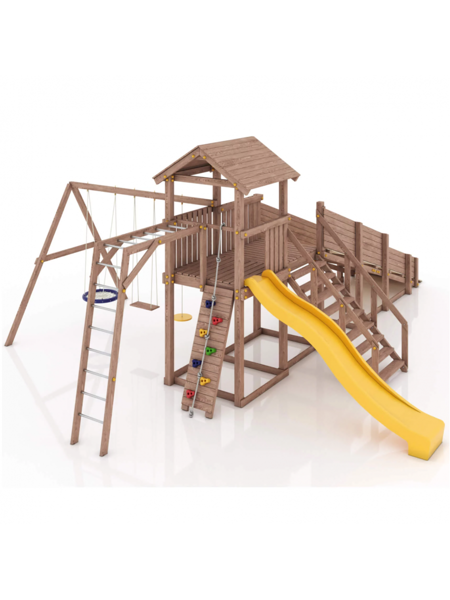 | Внешние размеры площадки8450 мм х 6450 мм | Высота 3660 мм | Высота качелей2300 мм |