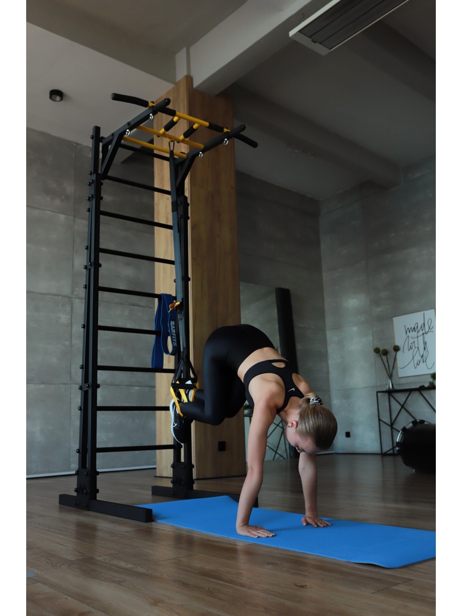 Тренажер оснащен комфортными перекладинами и элементами для различных упражнений. Он занимает минимум места, но при этом предоставляет максимум возможностей для занятий физической активностью в условиях собственного дома.