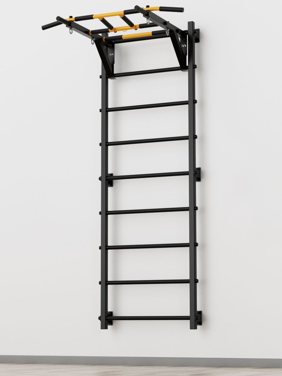 Шведская стенка New Age S1 выполнена в изысканном чёрно-жёлтом цвете, который добавит яркого акцента в ваш интерьер. В комплектации с турником, она обеспечивает полноценную тренировку всего тела, от рук и плеч до спины и мышц живота.