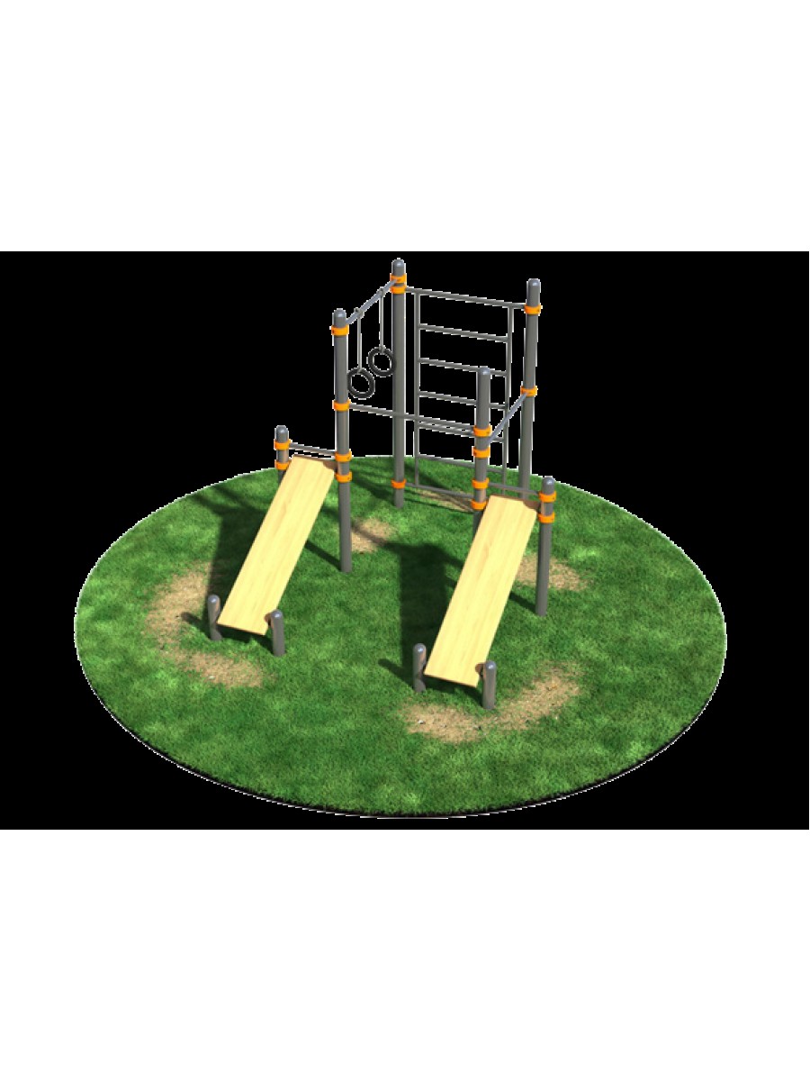 Комплектация | Турник 3 шт. Скамья 2 шт. Шведская стенка 1 шт. Кольца 1 шт. |